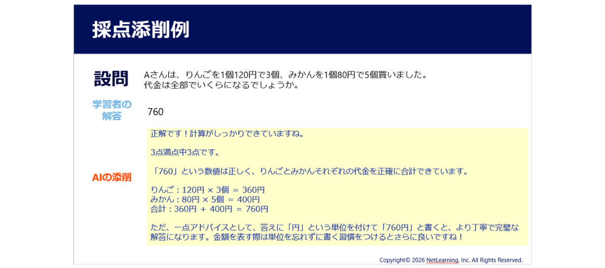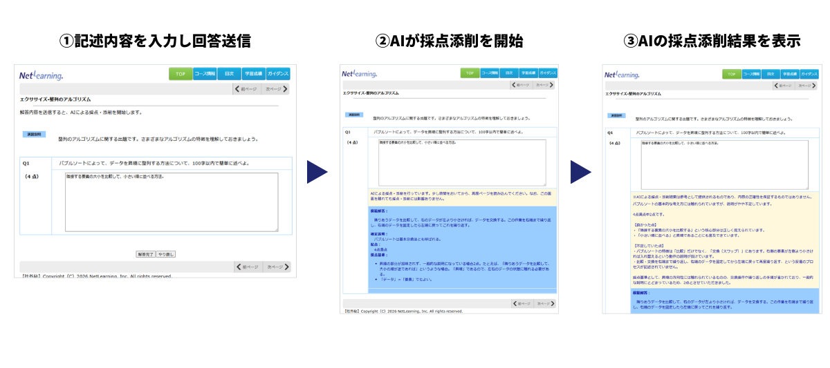 これにより、記述式問題の採点・添削を24時間365日実施可能とし、学びの高度化に対応します。