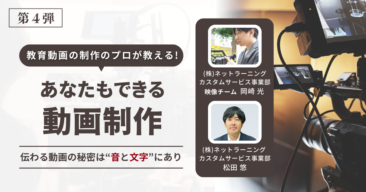 教育動画を制作する際、「映像」だけでなく、学習者の理解や共感を深めるために非常に重要な要素があります。それが「音」と「文字」です。本セミナーでは、教育効果を高めるための【音声】や【字幕・テロップ】の活用方法に焦点を当て、情報の伝達力を向上させるための工夫について、わかりやすく解説します。