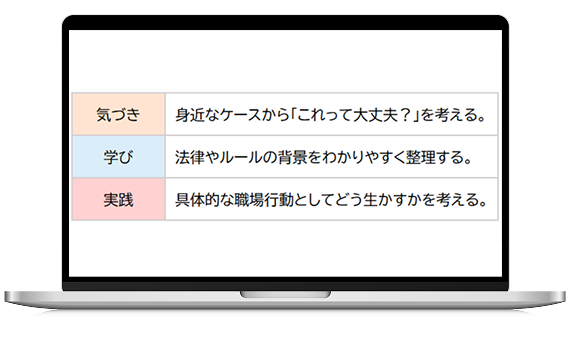 実践的な判断力が身につく3ステップ学習「気づき→学び→実践」の段階的なプロセスで