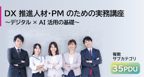『DX推進人材・PMのための実務講座~デジタル×AI活用の基礎~(35PDU取得:複数サブカテゴリ)』のお申込みはこちらから。