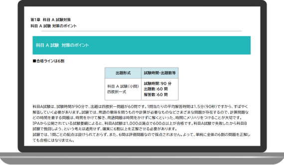 「合格ナビゲーション」では、科目A試験・科目B試験の対策のポイントの学習、最新のサンプル問題の解法を解説します。